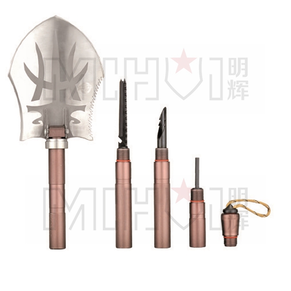 • Can be used as Hoe/shovel/knife/fire stick/sharped edge/lifesaving cone/bottle opener/saw/ice pickaxe